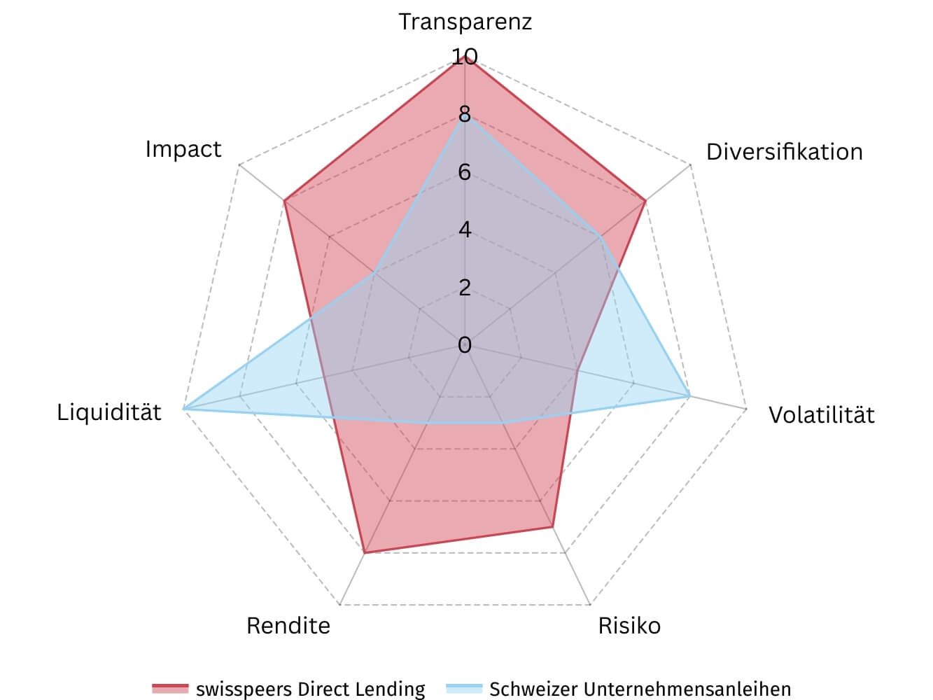 Im Vergleich der Eigenschaften zwischen Anlagen in Schweizer Unternehmensanleihen und Schweizer KMU-Krediten zeigt sich der unterschiedliche Charakter der beiden Anlageformen.